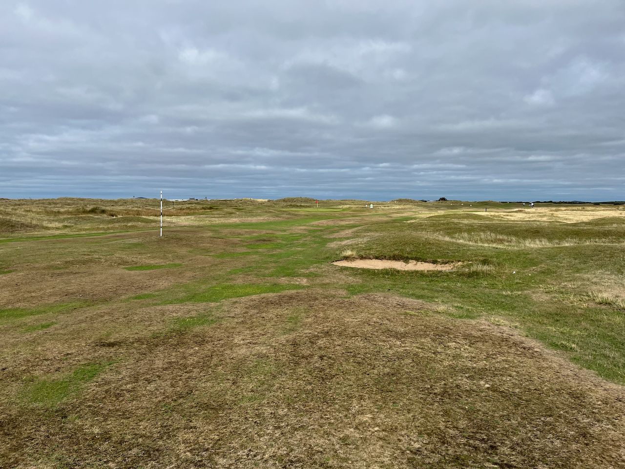 Der Platz beginnt mit einem knapp 180 m langen Par 3. Dann geht es hin und zurück durch typische Linkslandschaft Richtung Flugplatz. Erwähnenswert auf dem Teil vor dem Tunnel zum Rest des Kurses ist der Schlag ins Grün an Loch 3. Ein mittellanges Par 4, bei dem der zweite Schlag ins Grün blind über eine Düne zu schlagen ist. Immerhin gibt es einen hohen Marker als Richtungshinweis. Danach geht es durch den Eisenbahntunnel weiter mit den “neuen” 14 Löchern.