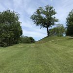 Loch 18 war dann ein mittellanges Par 4, bei dem das Grün hinter einem breiten Graben gelegen ist. Um gut aufs Grün zu kommen, muss man hier schon etwas weiter abschlagen. in anständiges Abschlussloch. Was aber noch mehr im Kopf bleiben wird für Anglesey ist der RAF Stützpunkt. Während wir die 18 spielten, wurde dort gerade durchstarten geübt. Also anfliegen und dann kurz vor dem landen wieder durchstarten. Wenn das mal passiert, ist das ja ok. Bei uns haben das aber 5 Jets durchgehend geübt. Und das war wirklich laut. Wir wollten unser Getränk nach Runde ja erst auf der Terrasse zu uns nehmen, aber irgendwie war das dann doch zu laut.