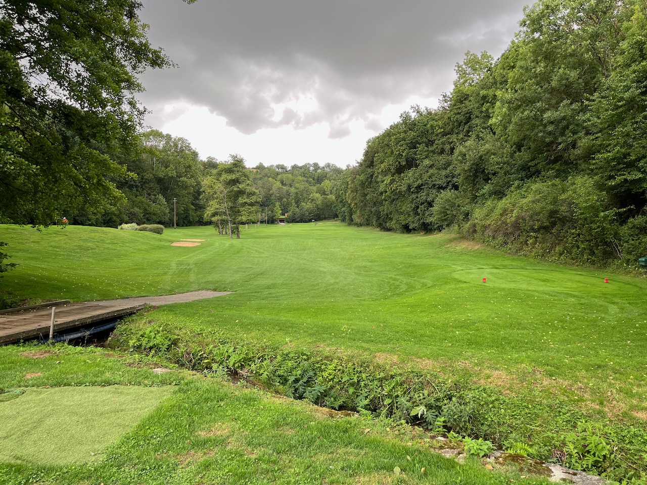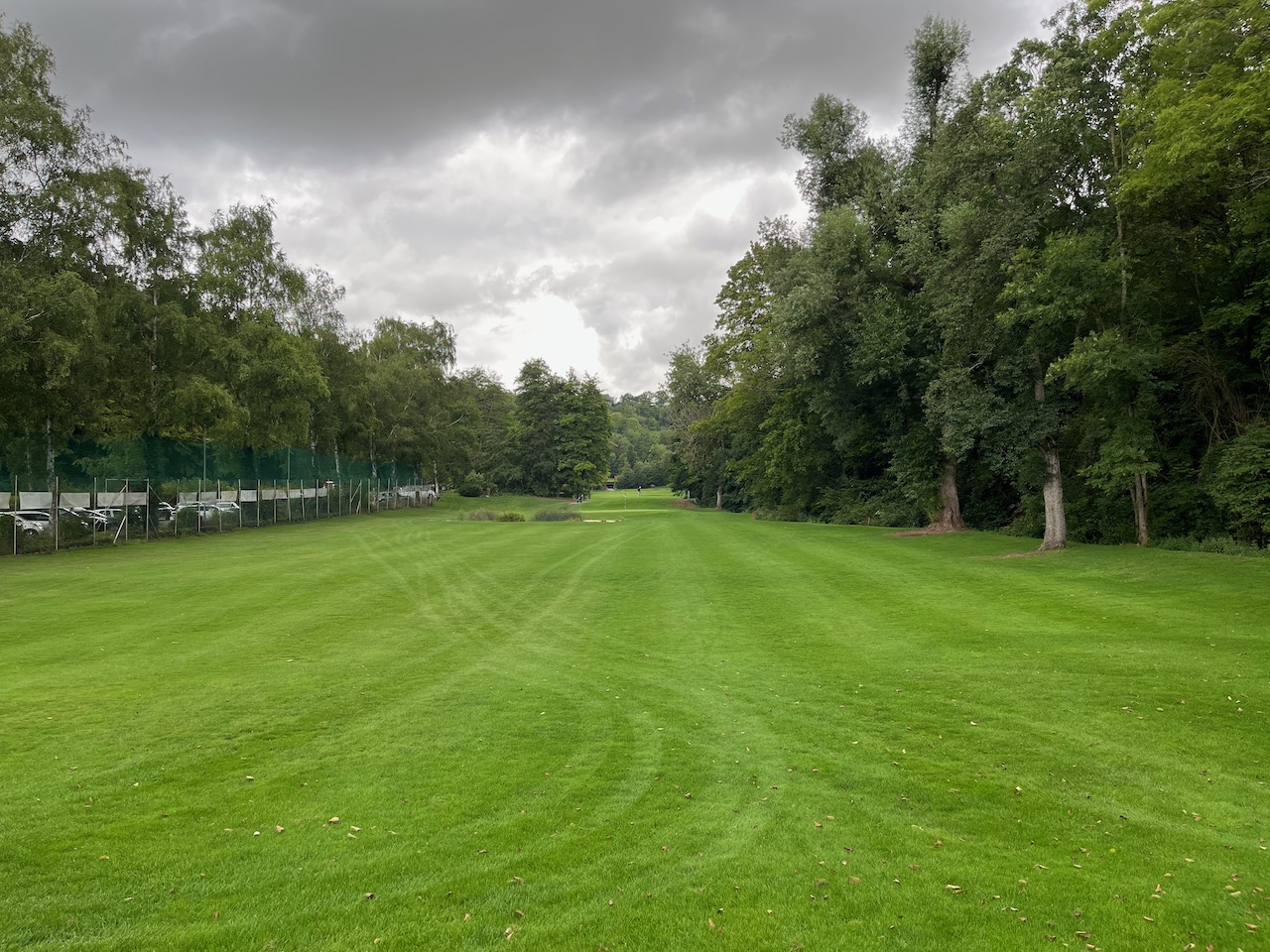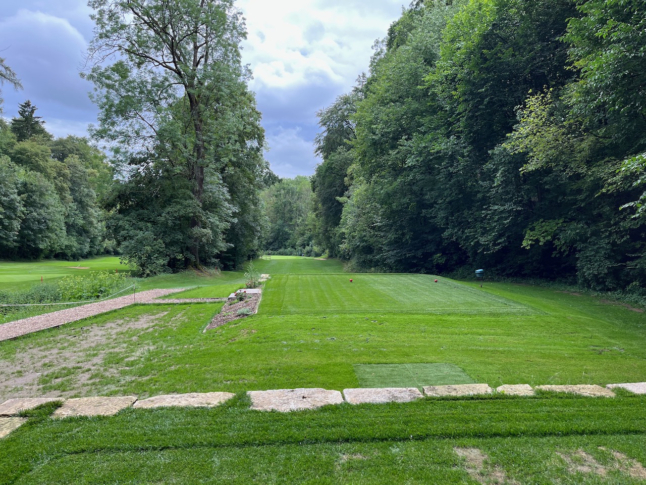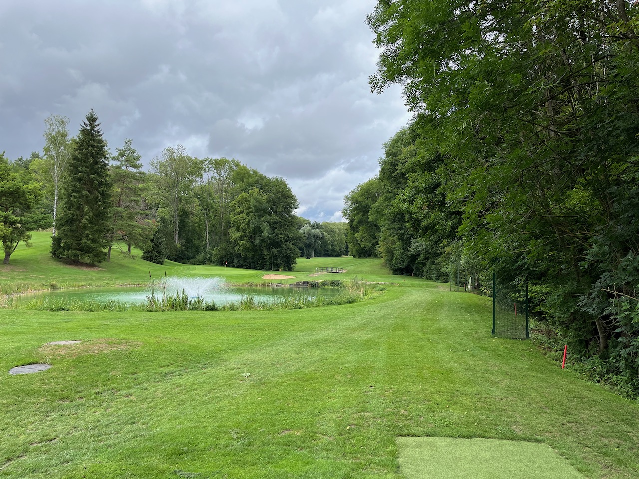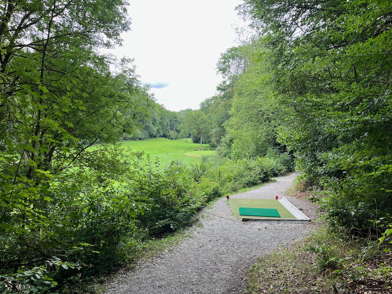 Auch nett fand ich die Kombi von zwei Par 3 Löchern anschliessend an das längste und schwerste Loch des Platzes. Loch 6 und 7 sind beide viel zu eng und auf den ersten Blick unmöglich. Wenn man dann aber am Abschlag steht, geht es eigentlich. Nur der Weg zum Abschlag der 7 ist wirklich heftig. Erst geht man steile Treppen bergauf und dann gefühlt lange in den Wald hinein. Trotzdem fragt man sich, ob die das ernst meinen mit dem Loch. Könnte etwas besser werden, wenn man sich mal eine Säge besorgen könnte. Ein paar Bäume rechts könnten wirklich einen Radikalschnitt brauchen.