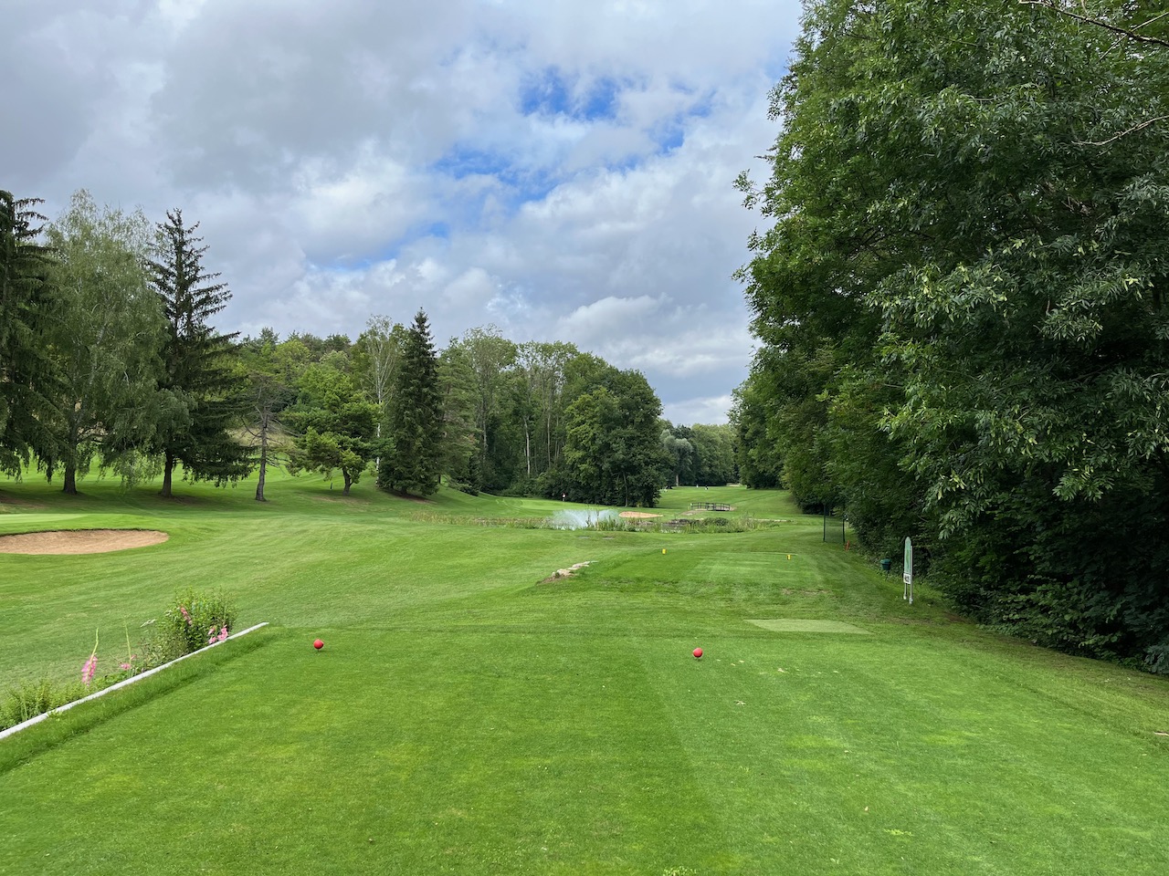 Wer den Platz in Bad Mergentheim gebaut hat, konnte ich leider nicht herausfinden. Auf jeden Fall wurde er 1971 eröffnet. Mit 1931 Metern von Gelb ist er alles andere als lang. Er hat ein Par 5, drei Par 4 und 5 Par 3 Löcher. Das hört sich möglicherweise für einige langweilig an. Ist es aber nicht. Der Platz bietet einige interessante Löcher an. Beispielsweise Loch 3. Ein recht enges Par 3, bei dem links Wald ist und rechts geht es steil bergab. Für einen guten Score sollte man schon das Grün treffen.